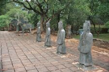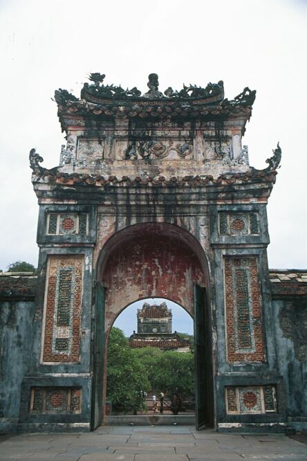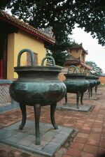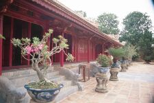 We take off on a cyclo tour of Hué, which is our tour leader’s favourite city in Vietnam. Cyclos are like rickshaws: you recline comfortably in front, shaded by a canopy, while your driver pedals you along the streets on a three wheeler. It’s the best way to see the city when you’re still feeling weary, and it’s wonderful to be part of the mad flow of traffic, down at street level. There are almost no cars here: just two-wheelers and cyclos. Hué is a gentler, simpler, more relaxed place than Hanoi; it still bears the more conservative, traditional feel of the North.