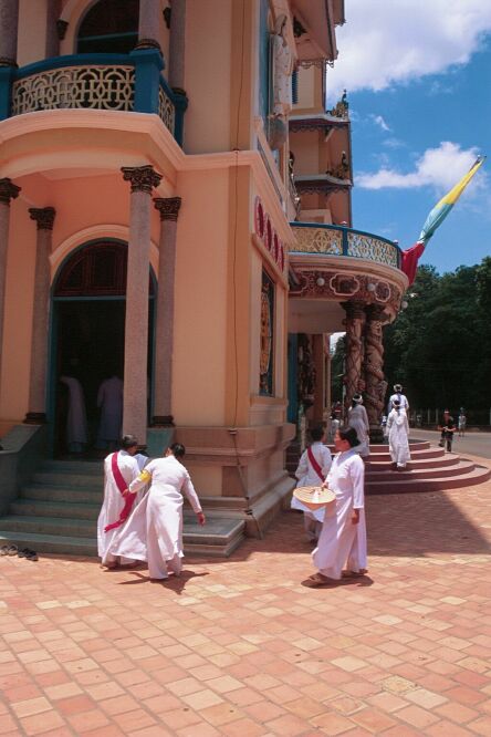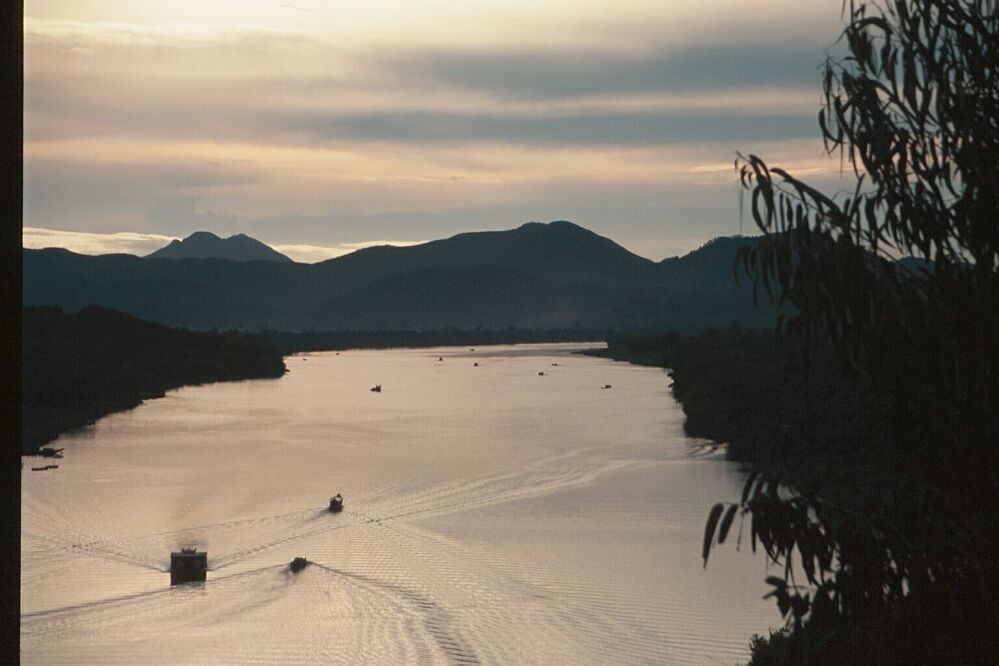 As we pass under one of the main bridges, teeming with traffic in both directions, I notice that only two people are crossing it on foot. A European or American couple, they look every inch the “independent travellers”. No cyclos for them at “tourist rip-off” rates (around 60p or 70p a journey, in fact); they look doggedly determined to trudge the streets of Hué by foot alone, through the heat and humidity. The man is half a dozen paces in front of the woman. They both look thoroughly miserable. They both notice our colourfully painted vessel passing below, and visibly frown at the “false”, “touristy” frivolity on display.