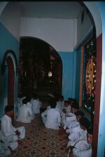 Squeezed into one cyclo, a young family group passes by in the other direction: father, mother and baby. They have the same quiet serenity which I have observed time and again over the past few days. They make such a lovely family that I find I cannot help but beam as they go by. The mother spots this, and catches my eye, and beams straight back at me. For a second or so, there is a complete communion between us, as our respective states of contentment become momentarily enmeshed. A few seconds later, in the midst of the traffic, an elaborately decorated coffin passes by, sitting on a cycle cart, on its way to be delivered somewhere. Birth and death, both gone in a flash.