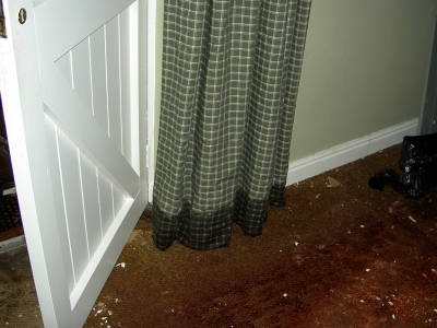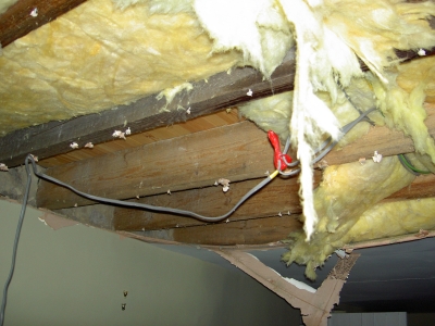 Something had sprung a leak in the upstairs bathroom, and the water had been accumulating in the gap between the floorboards and the plaster ceiling, before bursting through some time during the week.