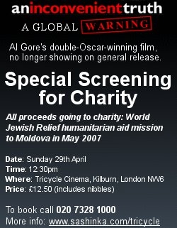 My good friend Sasha is embarking on a humanitarian aid mission to Moldova in May, and she needs to raise £5500 before she leaves. With over £2500 already raised in donations, she has decided to generate additional funds by arranging a one-off Sunday lunchtime screening of Al Gore’s Oscar-winning documentary An Inconvenient Truth.