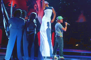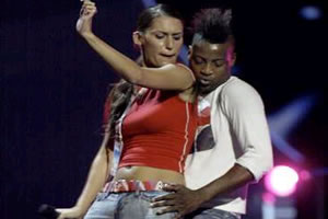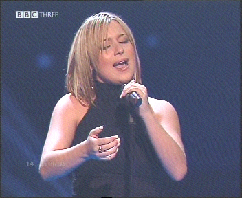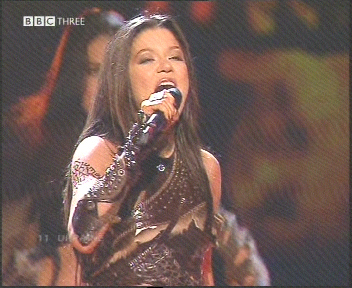 Enough with the winsome sweetness; let’s ramp it up several hundred notches, with leather, whips and Big Big Drumming that would test even the toughest of lesbian drumming troupes. As for Ruslana herself: who says that Eurovision has no appeal for heterosexual males? Lads, she’s gorgeous! Possibly the most Total Performance of the night. If the rumour mill in Istanbul is to be believed, this was the runaway winner on Wednesday, and quite rightly so.